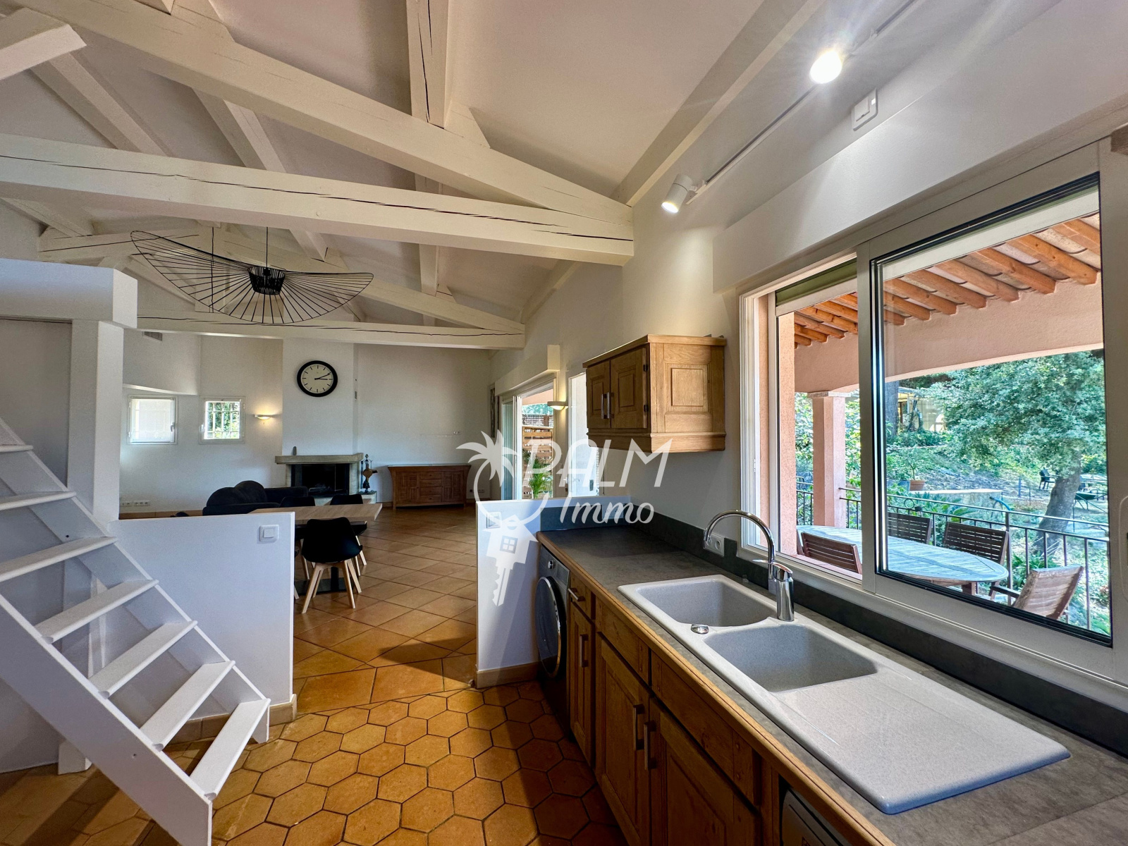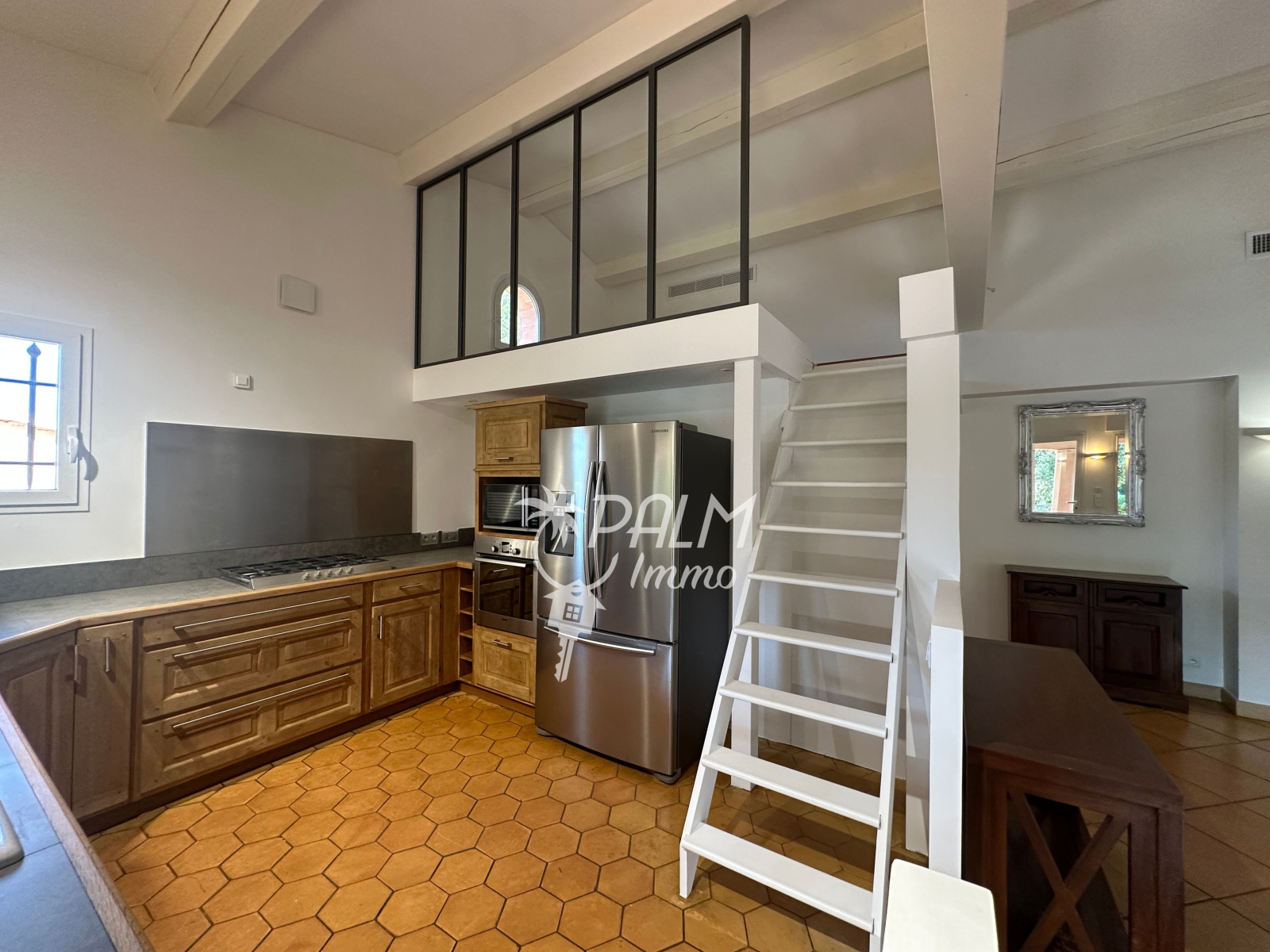Une mezzanine plongeant sur séjour est un atout supplémentaire.