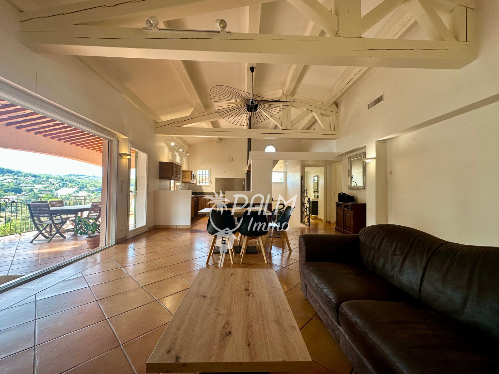 D'une surface utile de 113m2, il est composé d'un vaste séjour avec cheminée de 41m2, d'une cuisine équipée ouverte, l'ensemble donnant sur terrasse de 40m2 prolongée d'un jardin, offrant une exposition Ouest et une vue dégagée.