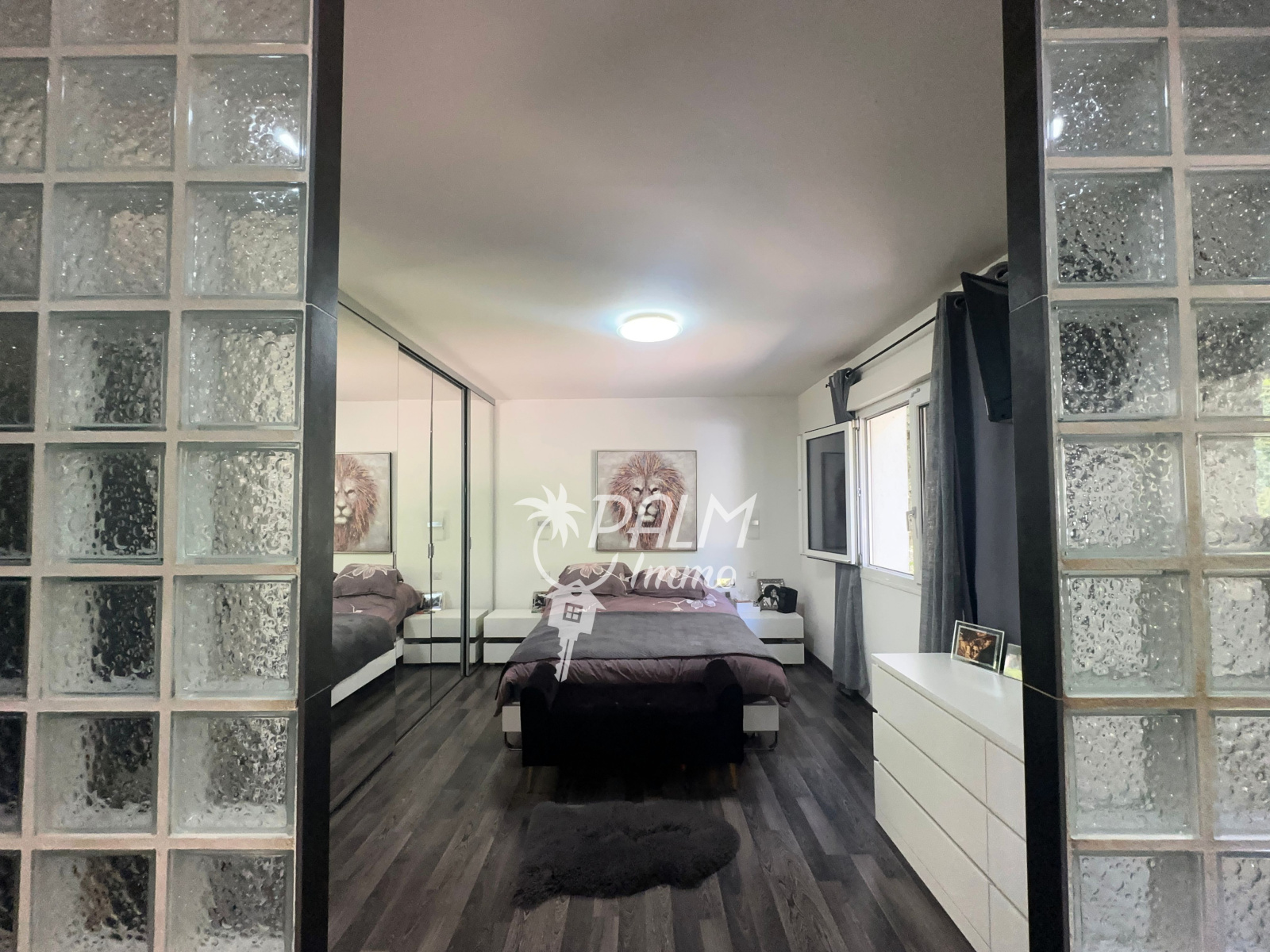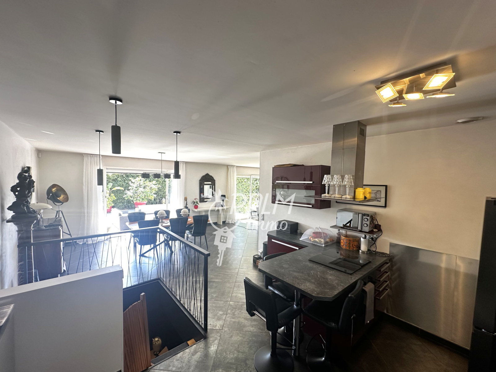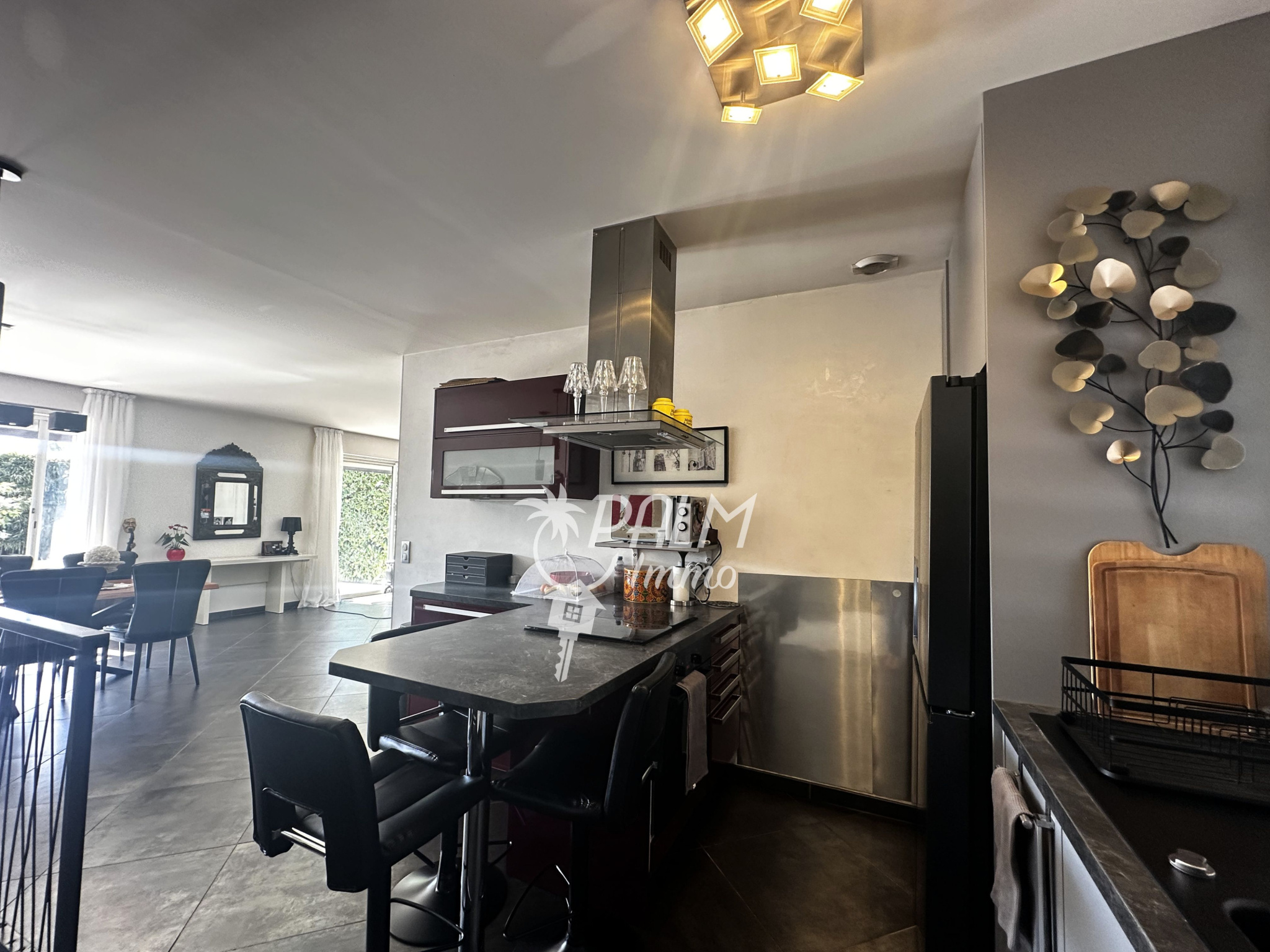 Nous soulignons les larges baies vitrées qui offrent une belle luminosité au spacieux séjour avec cuisine ouverte.
