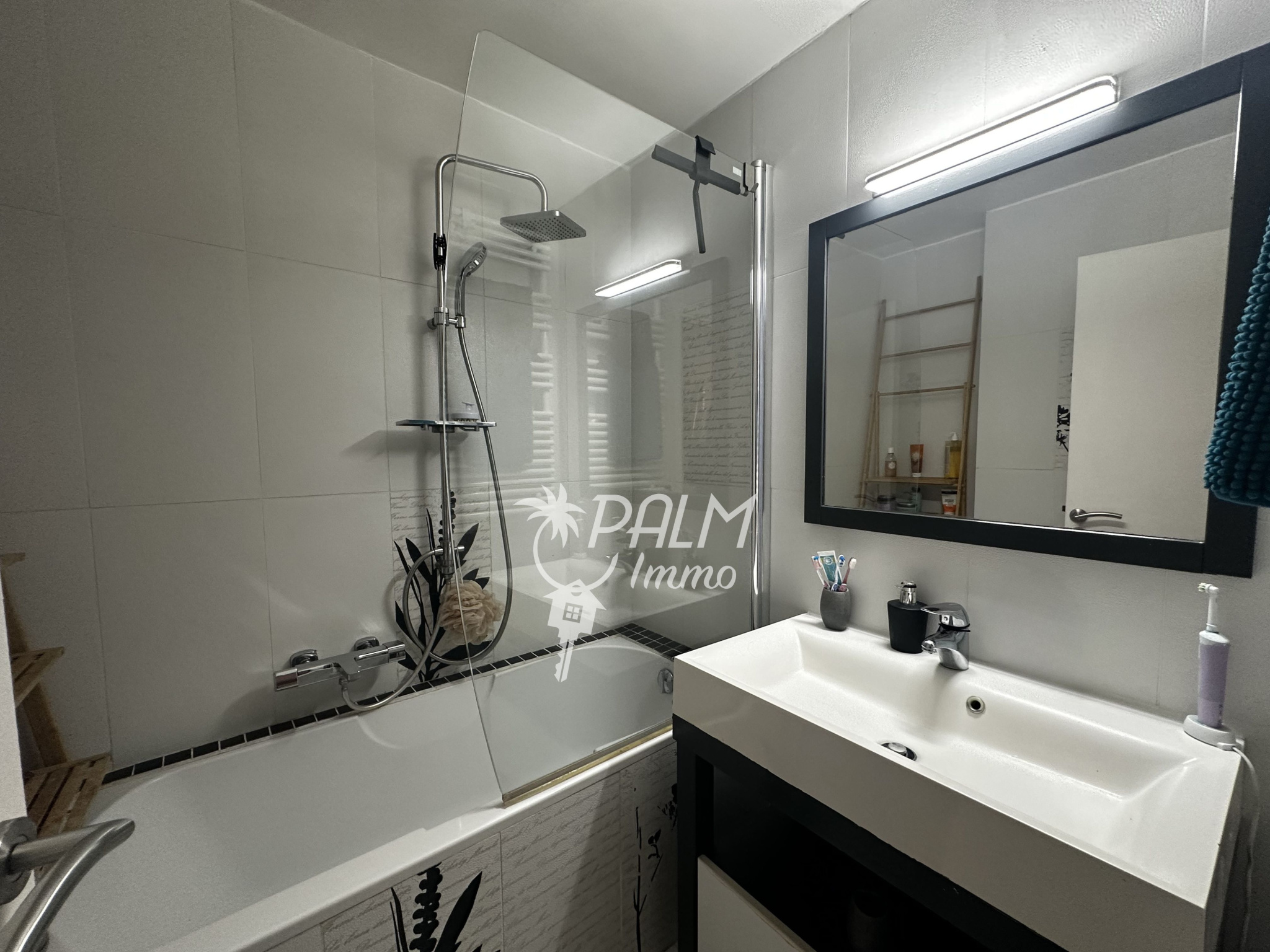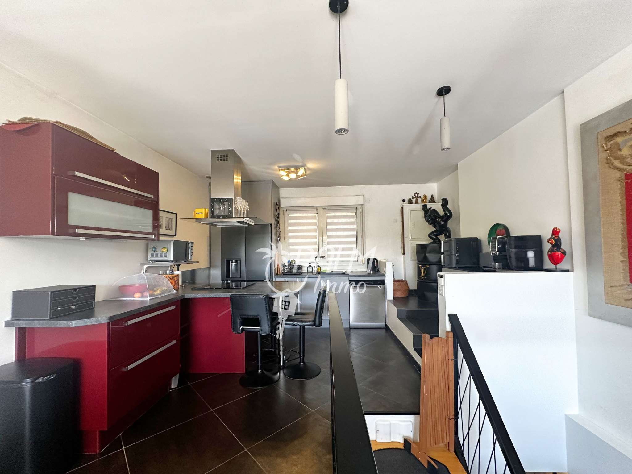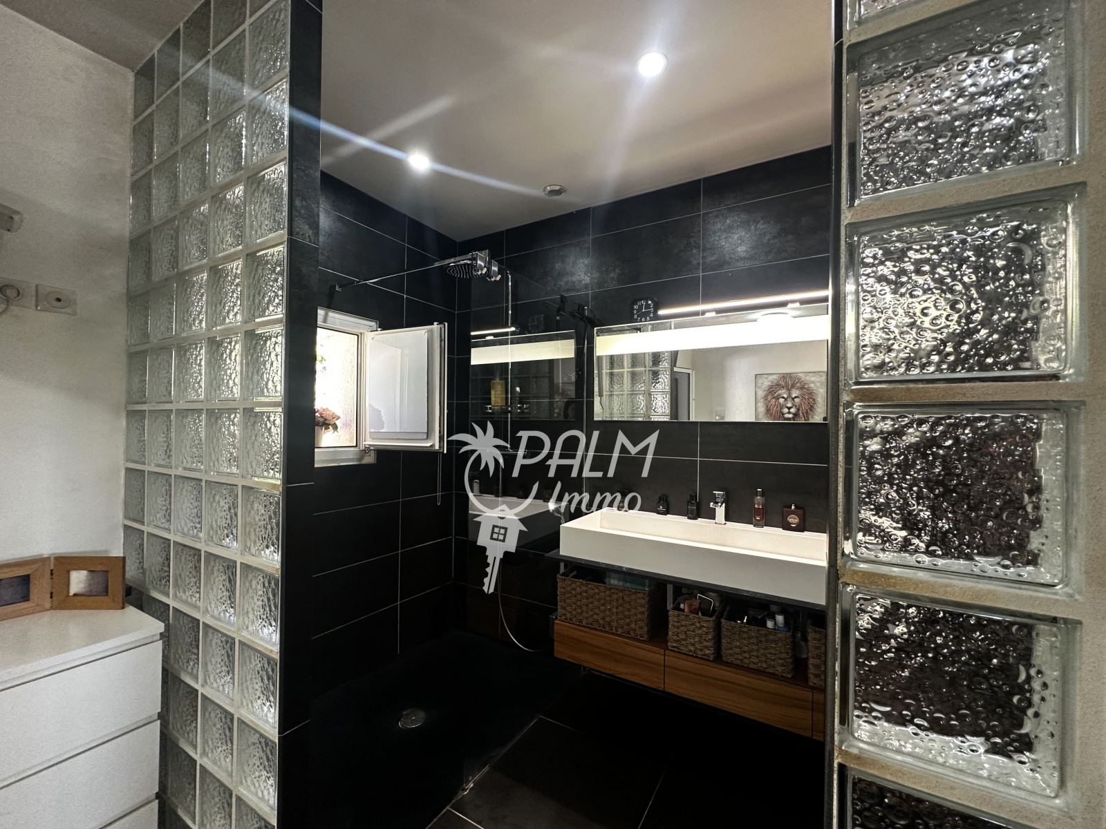 Nous soulignons les larges baies vitrées qui offrent une belle luminosité au spacieux séjour avec cuisine ouverte.